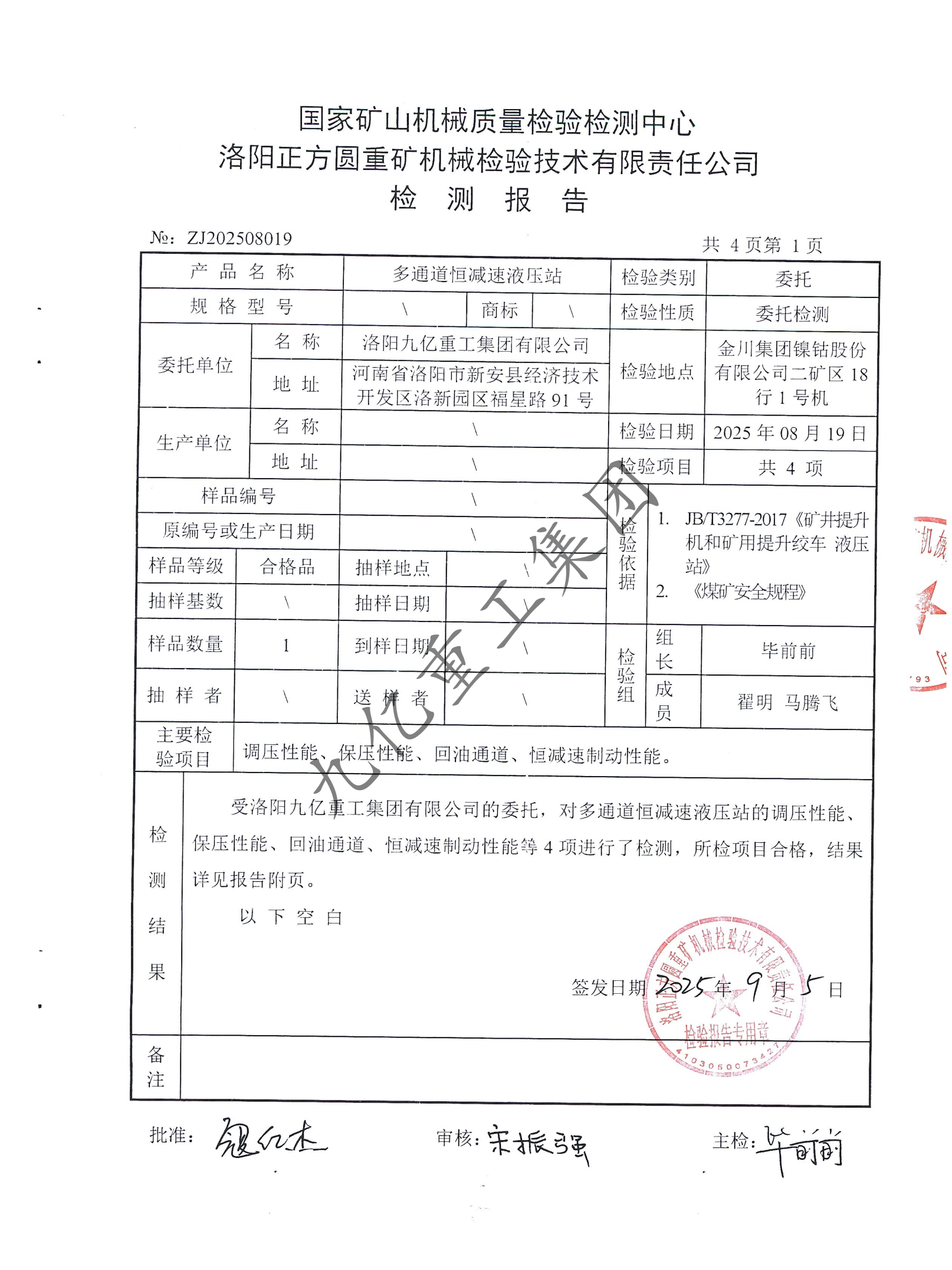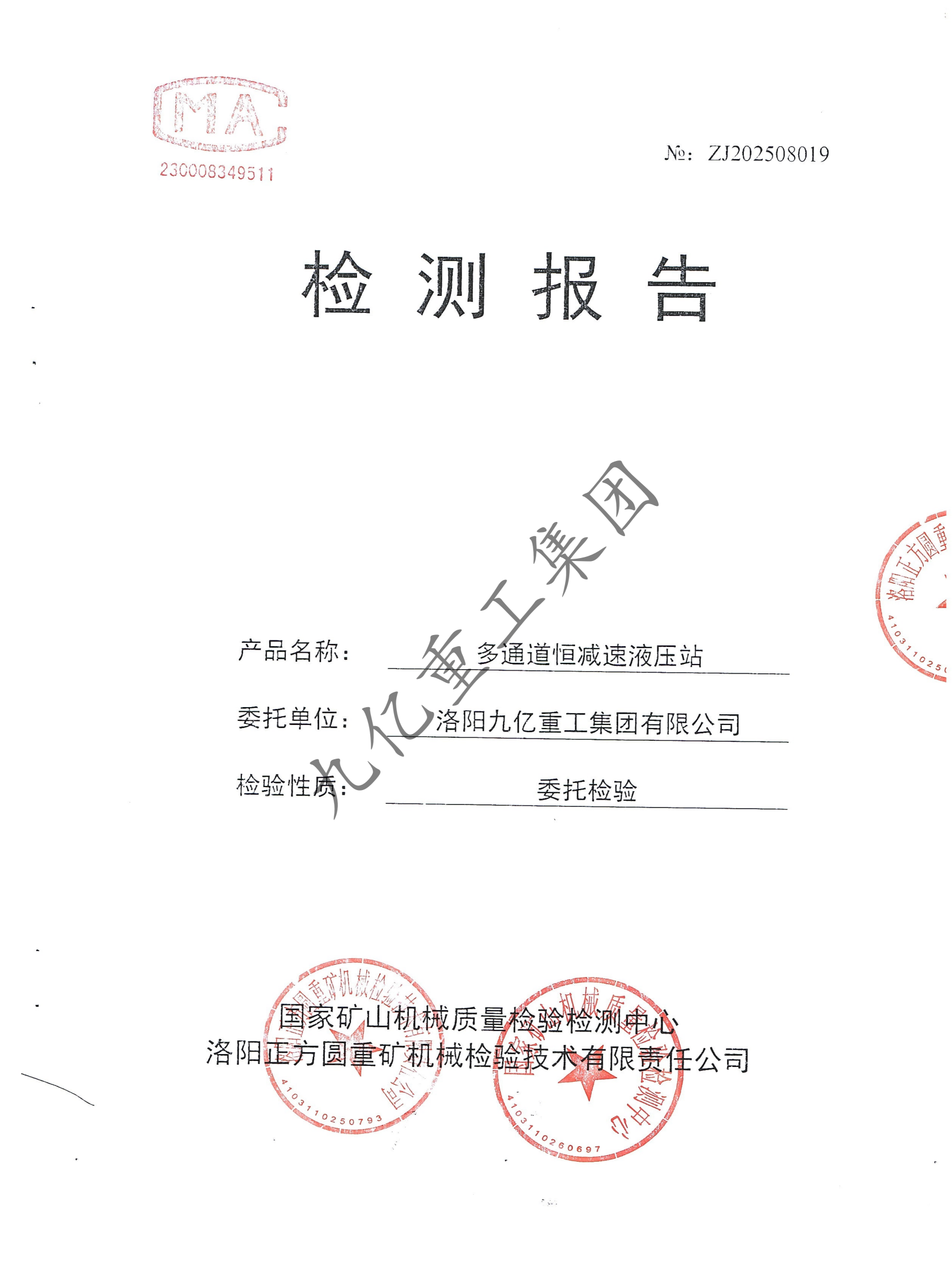 多通道恒減速液壓站檢驗報告